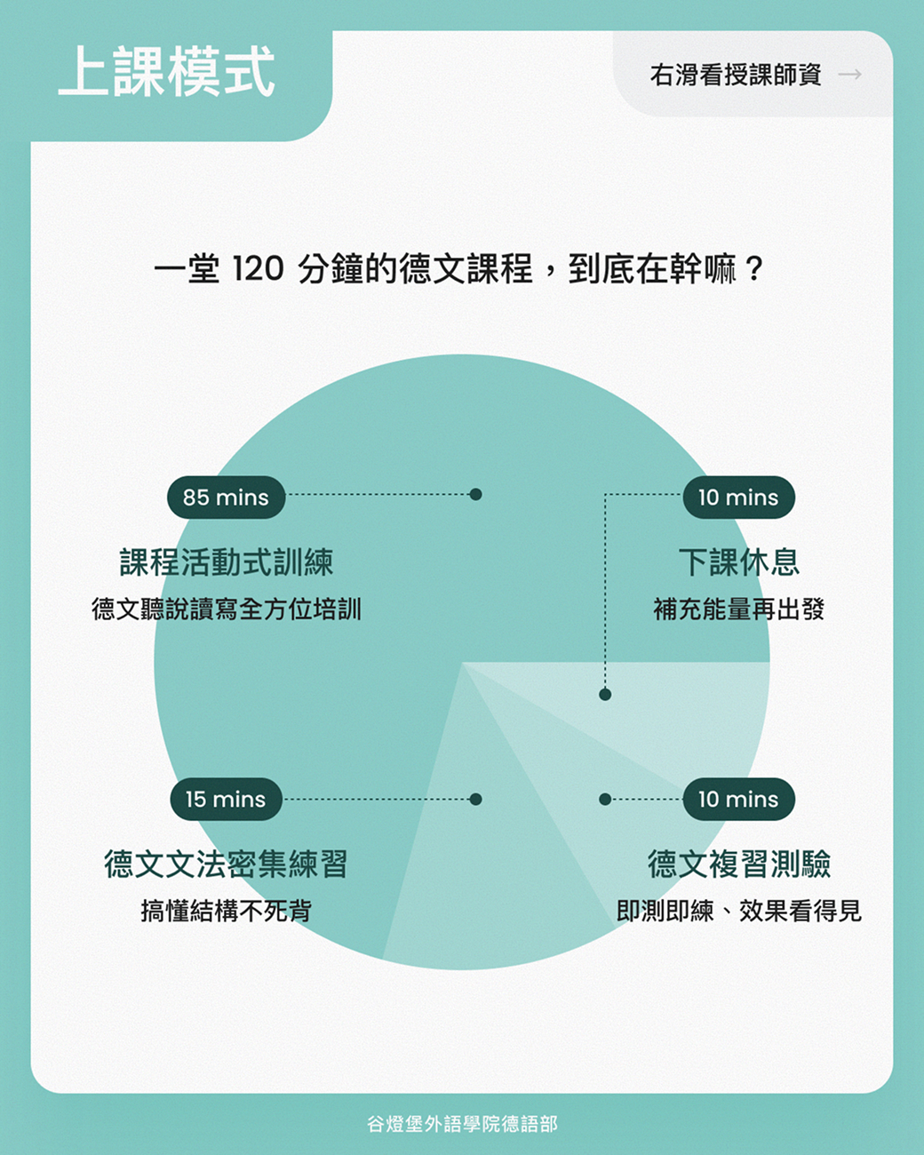 谷燈堡外語開設的德文 B1 課程專為已具備中級德語程度的學習者設計。課程將深入學習更複雜的語法結構,擴大各種主題的詞彙量,並強化聽、說、讀、寫的綜合運用能力。學生將能理解和討論廣泛的話題,如時事、文化、學術和職業相關內容。課程還注重提升學生的口語流利度和寫作技巧,以及培養跨文化溝通能力。課程結業後有能力去應考德文 B1 檢定考。