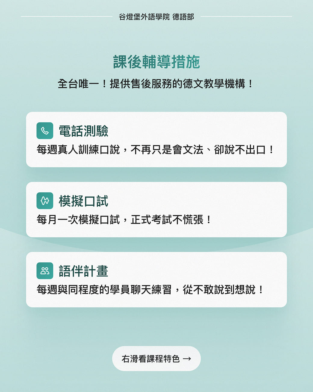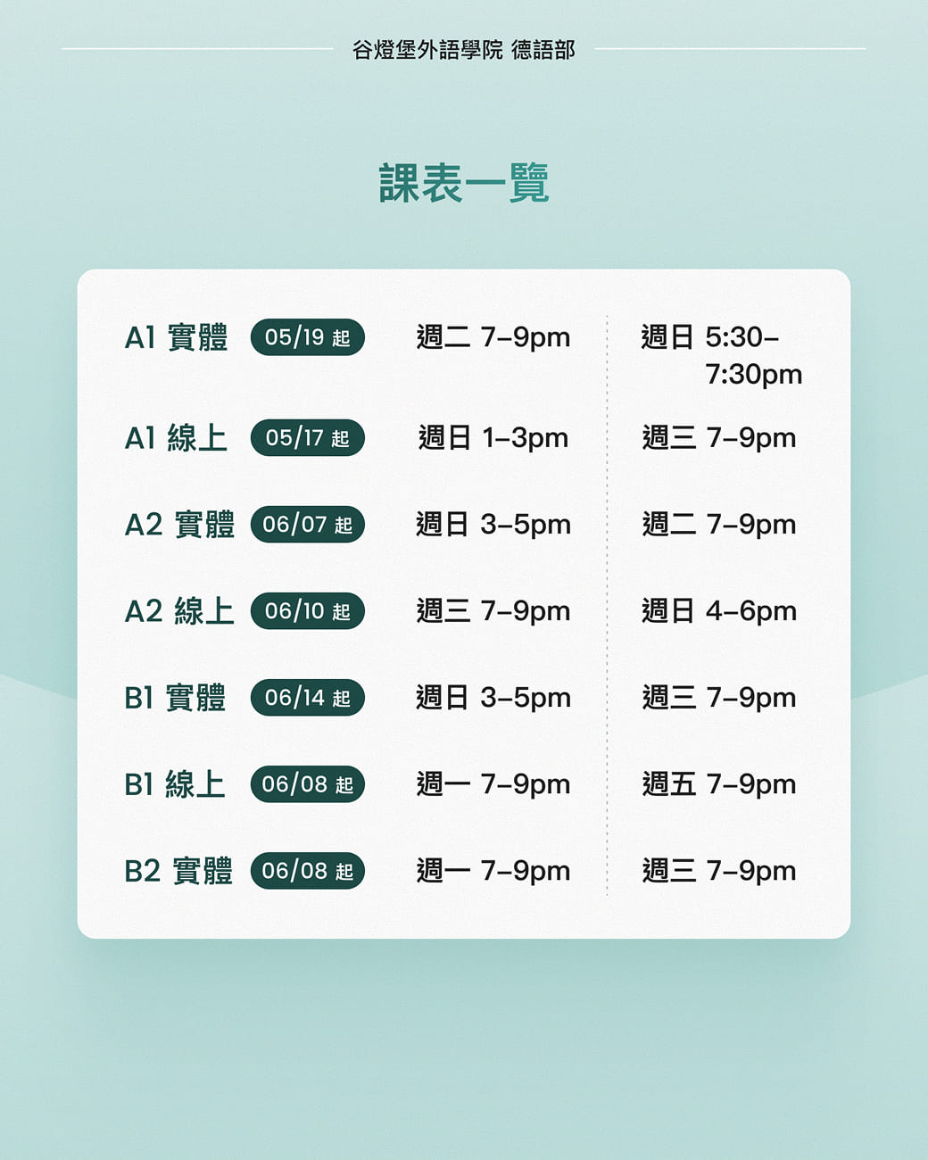 B1+ 為德文 B2 的銜接課程。透過 B1+ 課程能夠鞏固並深化您在B1階段所學的語言技能,為進一步學習B2級別的內容做好準備。您將能更自信地應對高級主題的討論,如時事、文化和專業領域,為在德語環境中生活、學習或工作奠定堅實基礎。
