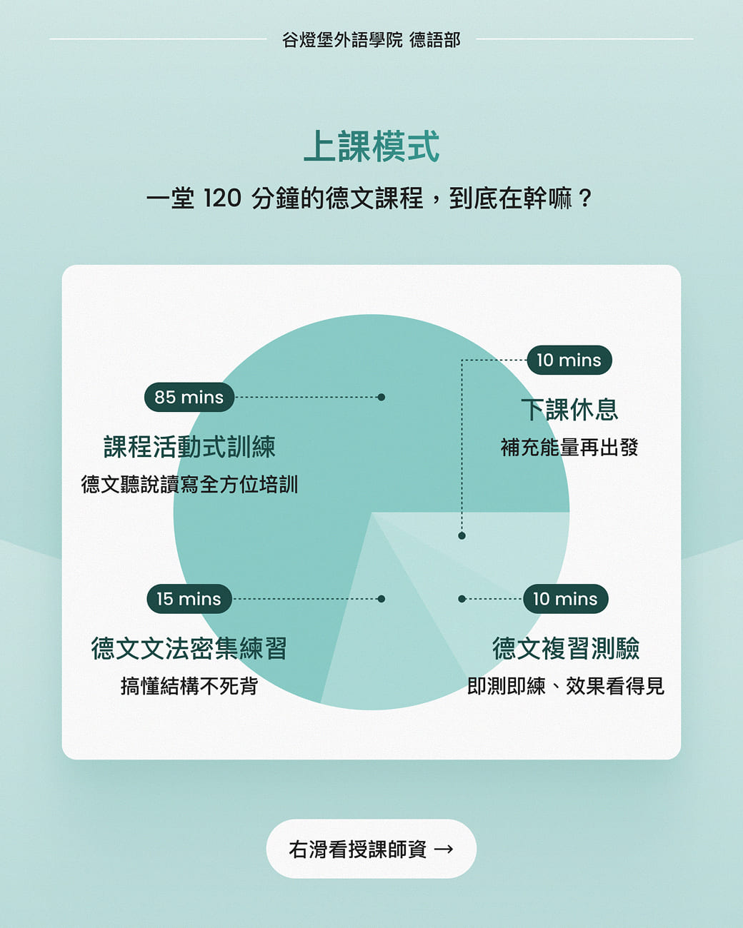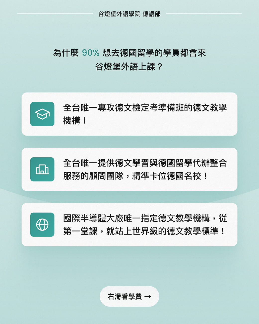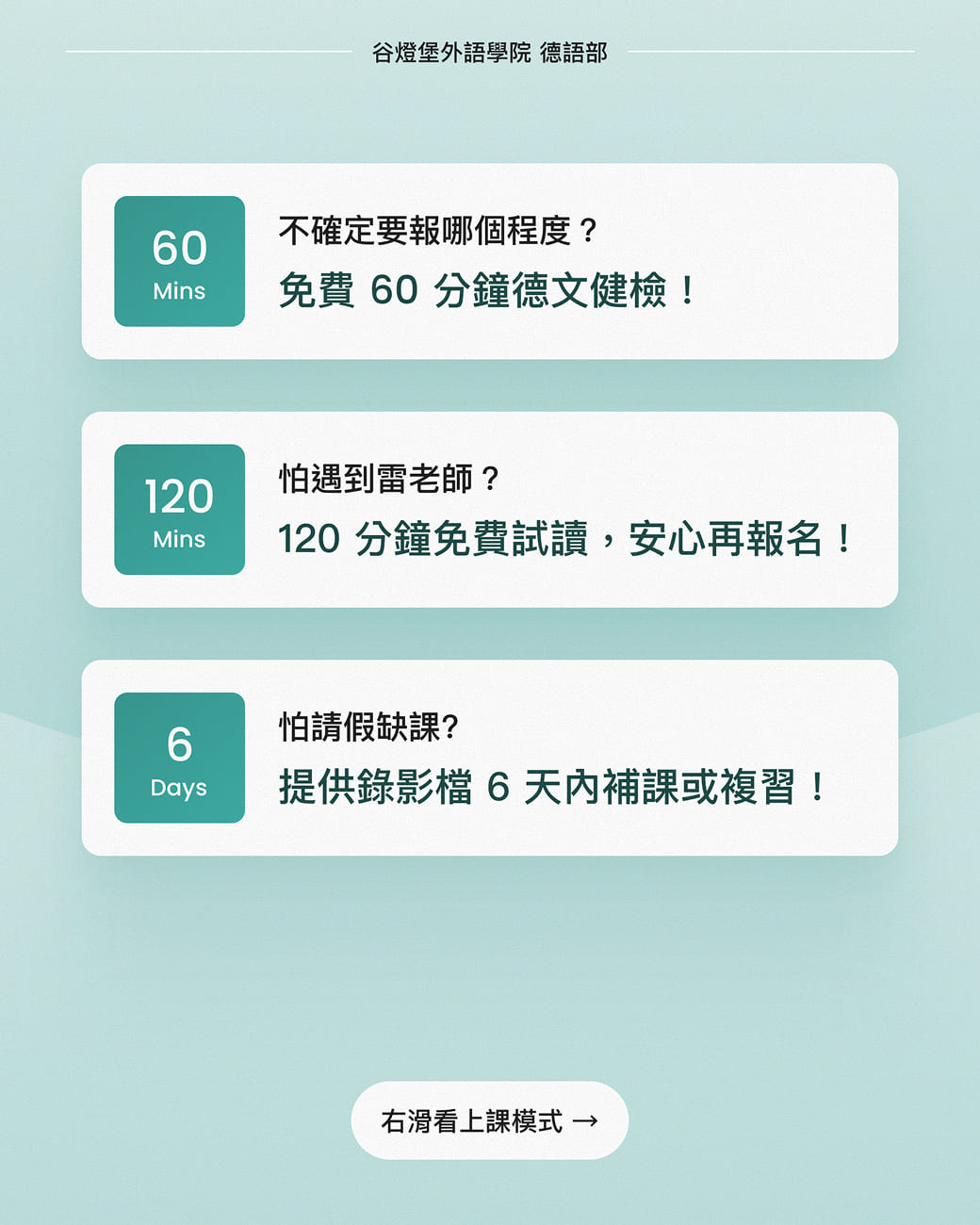 谷燈堡外語開設的德文 B1 課程專為已具備中級德語程度的學習者設計。課程將深入學習更複雜的語法結構,擴大各種主題的詞彙量,並強化聽、說、讀、寫的綜合運用能力。學生將能理解和討論廣泛的話題,如時事、文化、學術和職業相關內容。課程還注重提升學生的口語流利度和寫作技巧,以及培養跨文化溝通能力。課程結業後有能力去應考德文 B1 檢定考。