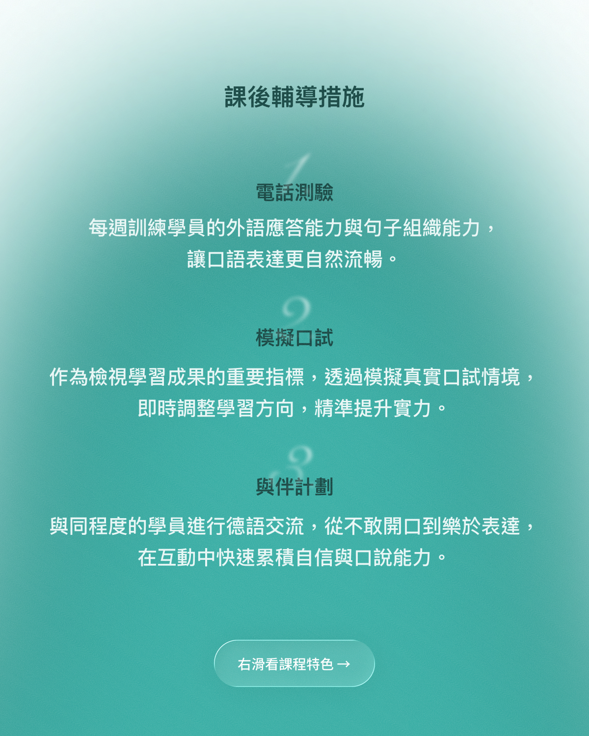 在德文 B2 課程中,將訓練學員們能理解和討論更深入和抽象的主題,如哲學、社會議題和專業領域的內容。課程還注重培養學生的語言精確性和表達風格,以及在正式和非正式情境下的溝通技巧!課程結業後有能力去應考德文 B2 檢定考。